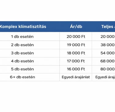 Rendszeresen karbantartott klímáknál a legtöbb esetben elegendő az alap klímatisztítást elvégezni.